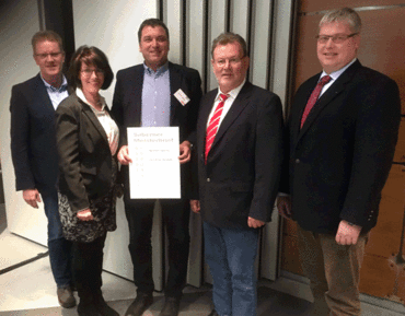 Anlässlich der Vollversammlung der Handwerkskammer Münster wurde Bernhard Friedrichs aus Steinfurt der Silberne Meisterbrief für 25 Jahre Meisterschaft im Dachdecker-Handwerk überreicht.